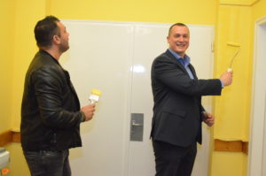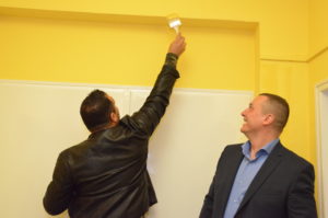 Az ünnepség végén az örökbefogadó cég képviselői Ormos Péter igazgató és Gáspár Laci énekes, előadóművész, a Duna Autó Zrt. jótékonysági nagykövete egy jelképes, közös festéssel fejezték be az osztály felújítási munkálatait.