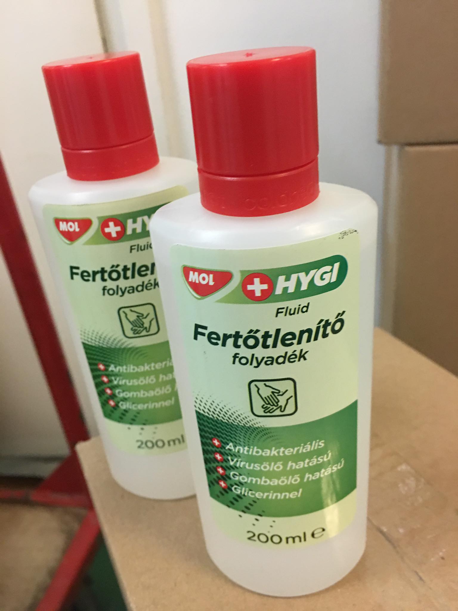A Magyar Olaj- és Gázipari Nyrt. 200 ml és 500 ml MOL Hygi Fluid. kézfertőtlenítőt ajándékozott a Szent Margit Kórház számára.