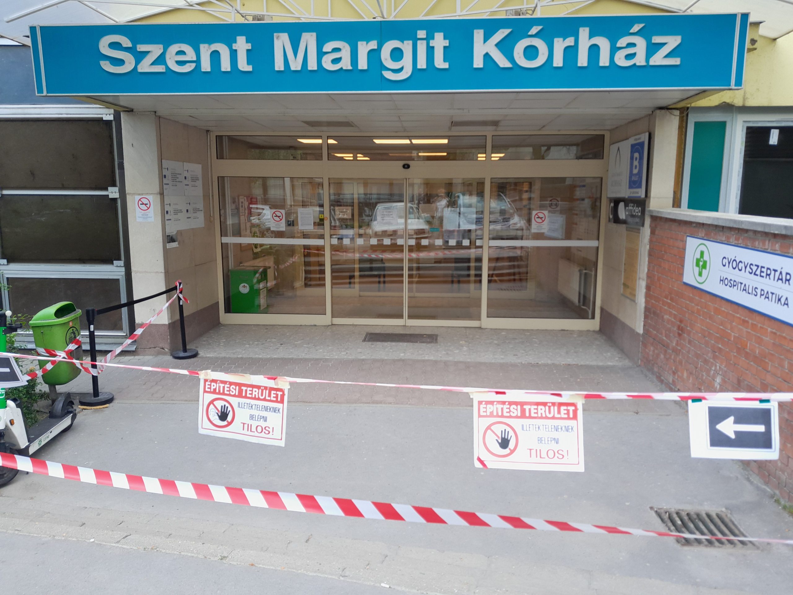 A „Budapesti egészségügyi intézmények energetikai korszerűsítése” című és KEHOP-5.2.2-16-2016-00107 azonosító számú projekt keretén belül tovább folytatódik Intézményünkben a korszerűsítés, melynek következő lépéseként a “B” épület belső udvari bejáratánál lévő kőburkolat bontására kerül sor.