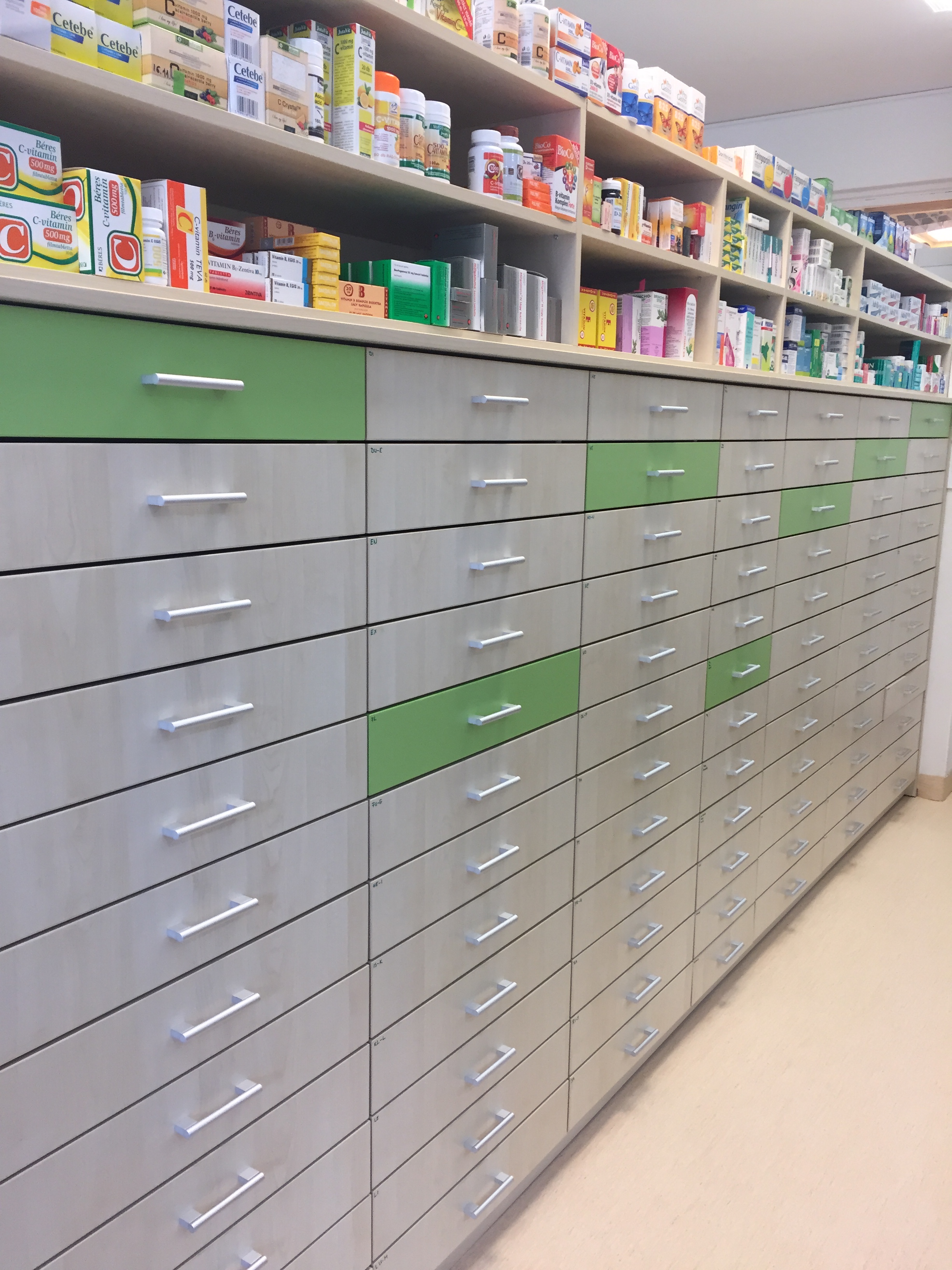 állomása. A készleten lévő mintegy 3500 gyógyszer és egyéb termék kategóriák szerint rendezve, modern fiókrendszer kialakításával átláthatóbbá vált. Tágabb és esztétikusabb lett a kiszolgálóhelyiség, így a szebb környezet mellett komfortosabbá is vált a munkavégzés a Kórház gyógyszertárában.„
